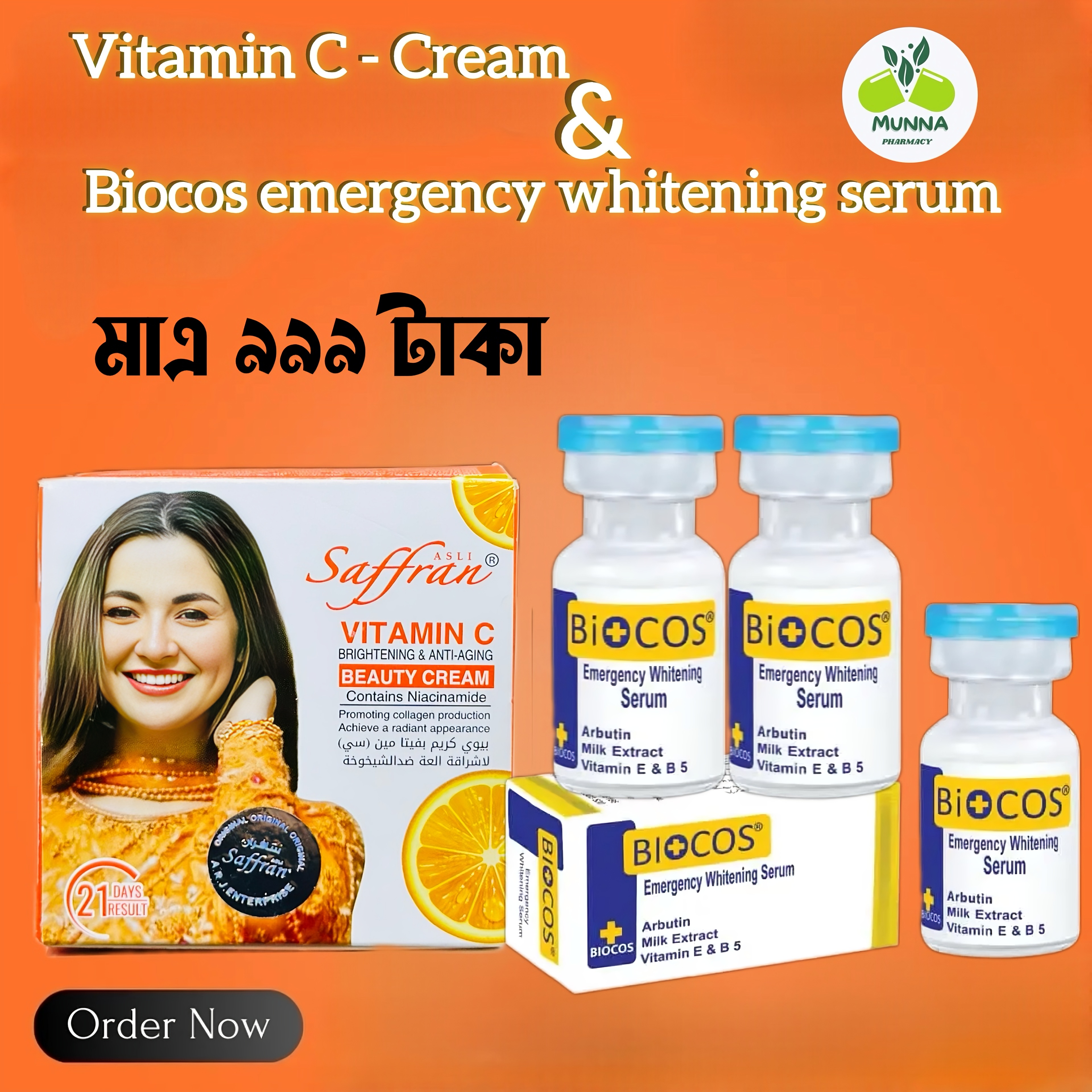 Biocos Emergency Whitening serum and Vitamin C - Crame Combo